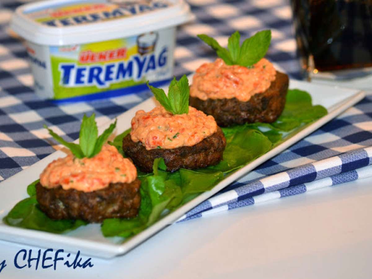 beze ithaf. Bu dekoratif tarafı yuvarlak şekil böylece. - Biz almak. Bizim köfte eritmek şekillendiren Teremyağ'ı 2 yemek kaşığı Pan Fry dubleks ve pişirme çanak almak.